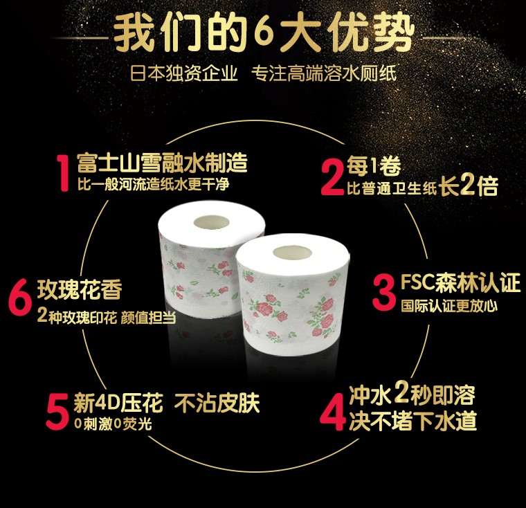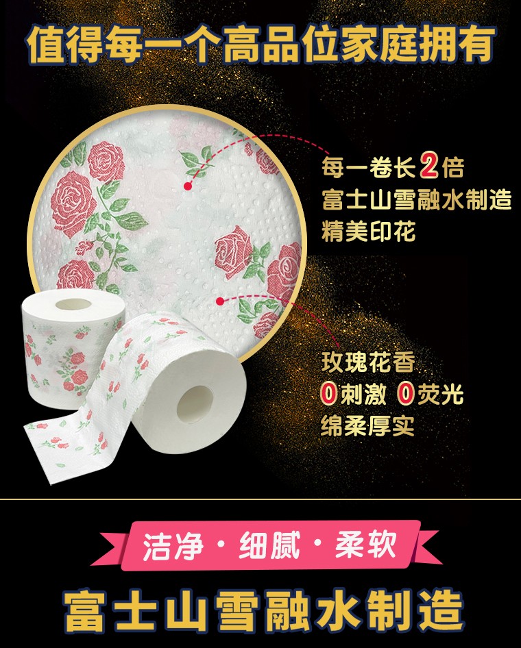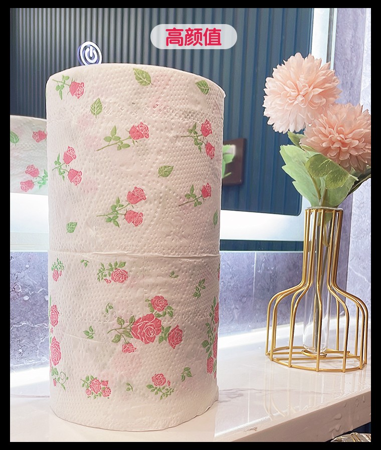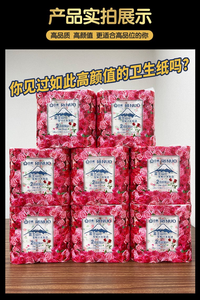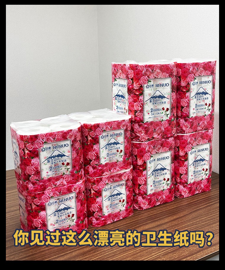 日諾日本進口有芯卷筒紙8提水溶卷紙玫瑰印花速溶衛(wèi)生紙1箱