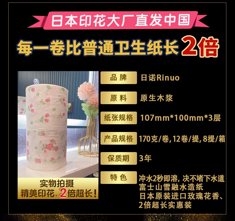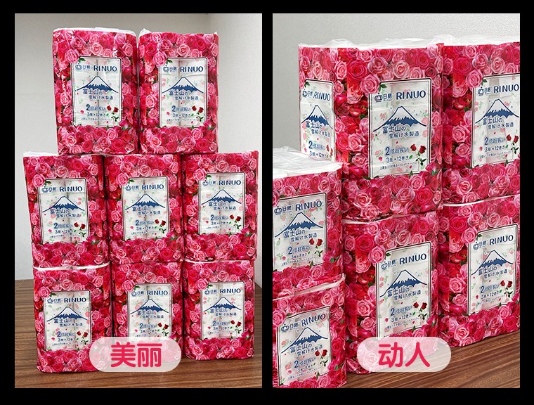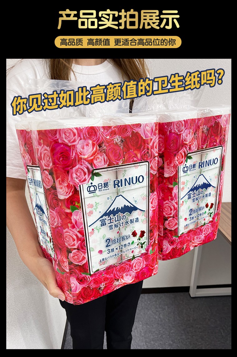 日諾日本進(jìn)口有芯卷筒紙12卷水溶卷紙玫瑰印花速溶衛(wèi)生紙1箱