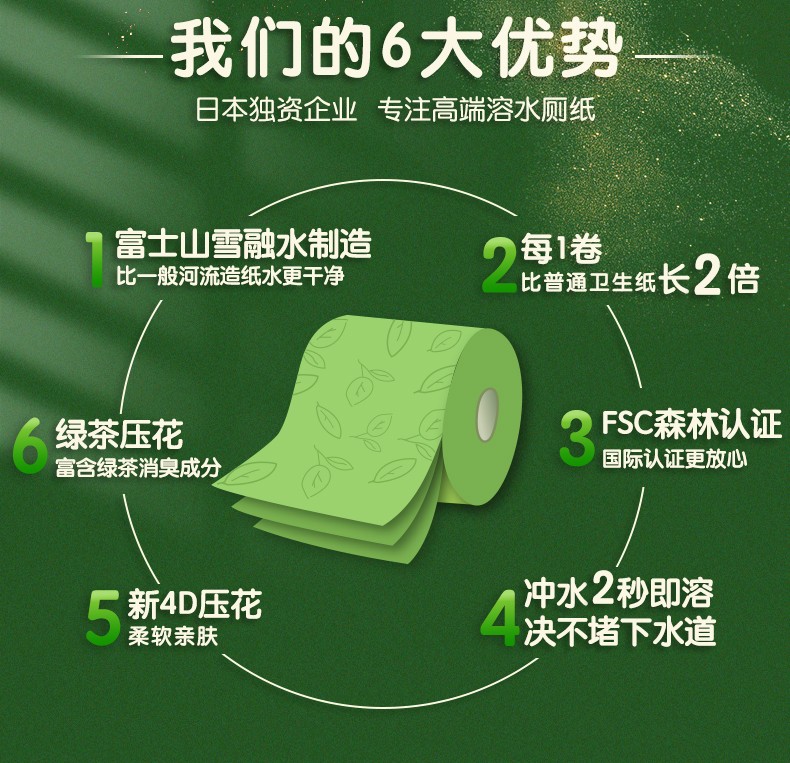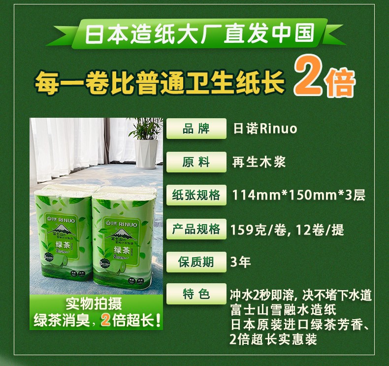 采購:日諾日本進(jìn)口有芯卷筒紙1提綠茶芳香可溶水溶衛(wèi)生紙卷紙