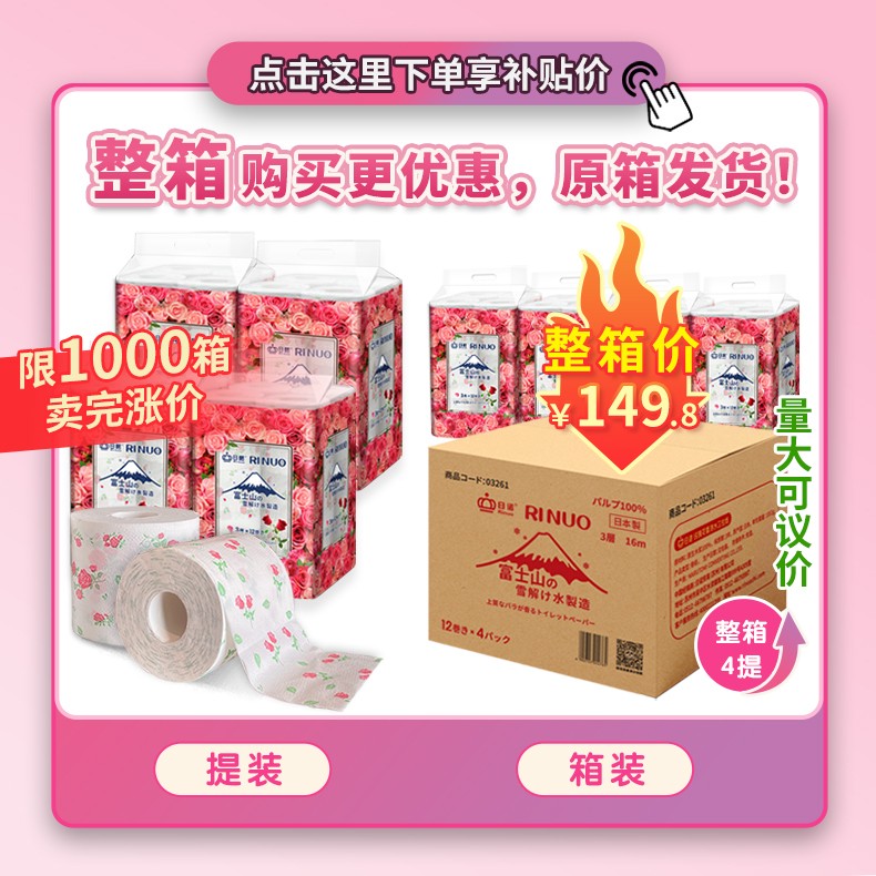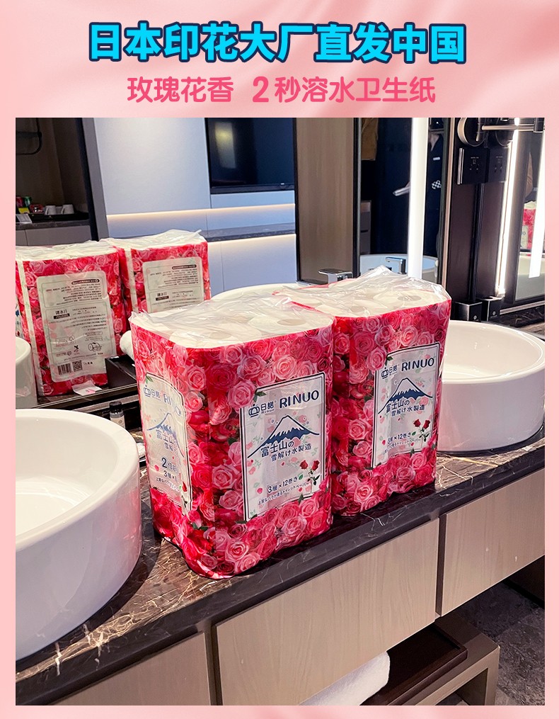 采購(gòu):日諾日本進(jìn)口玫瑰花香卷筒紙印花衛(wèi)生紙可溶水溶廁紙有芯卷紙1提