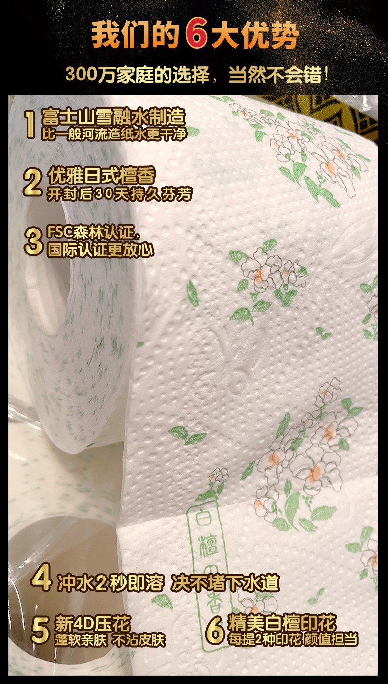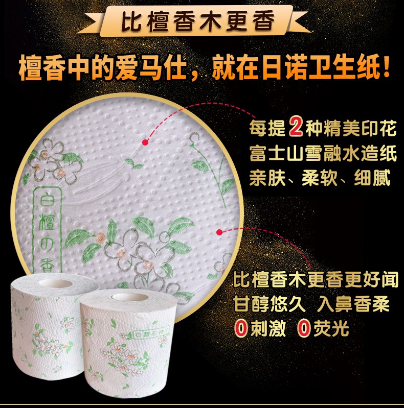 采購:日諾日本進(jìn)口檀香印花衛(wèi)生紙卷筒紙可溶水速溶廁紙有芯卷紙巾1提