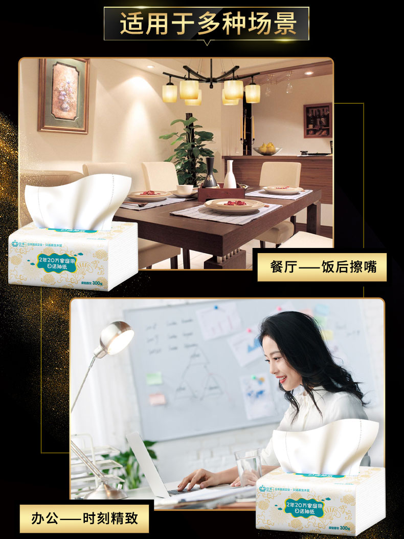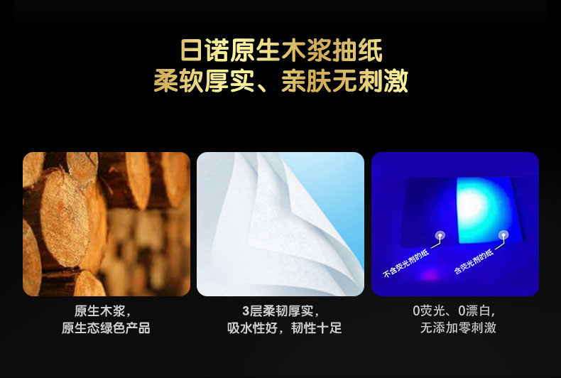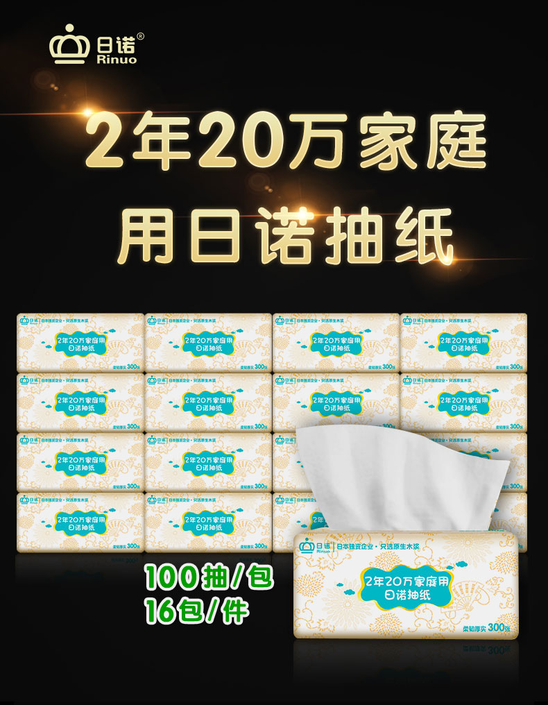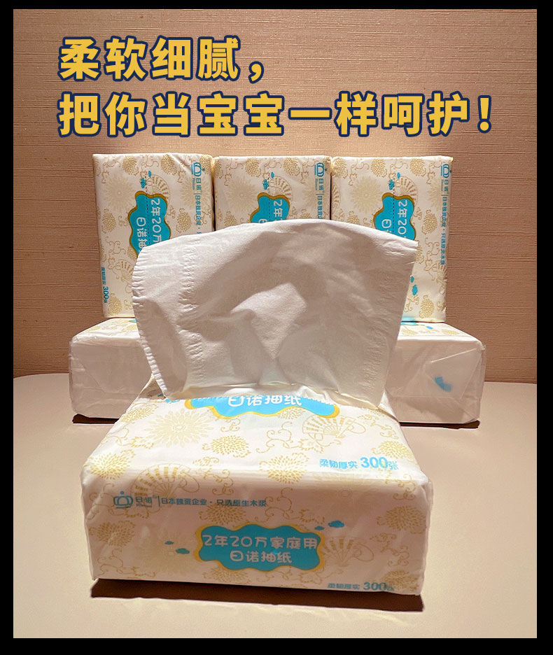 日諾抽紙 原生木漿面巾紙,家用木漿抽紙 衛(wèi)生餐巾紙2提16包