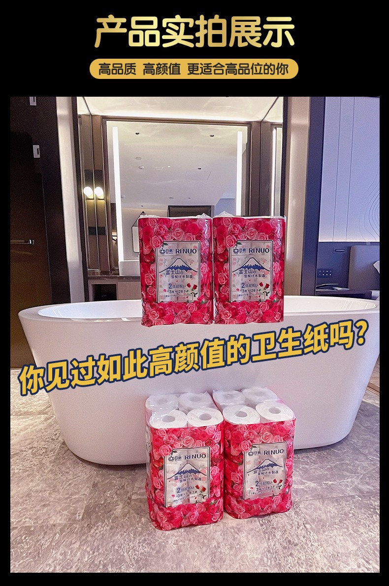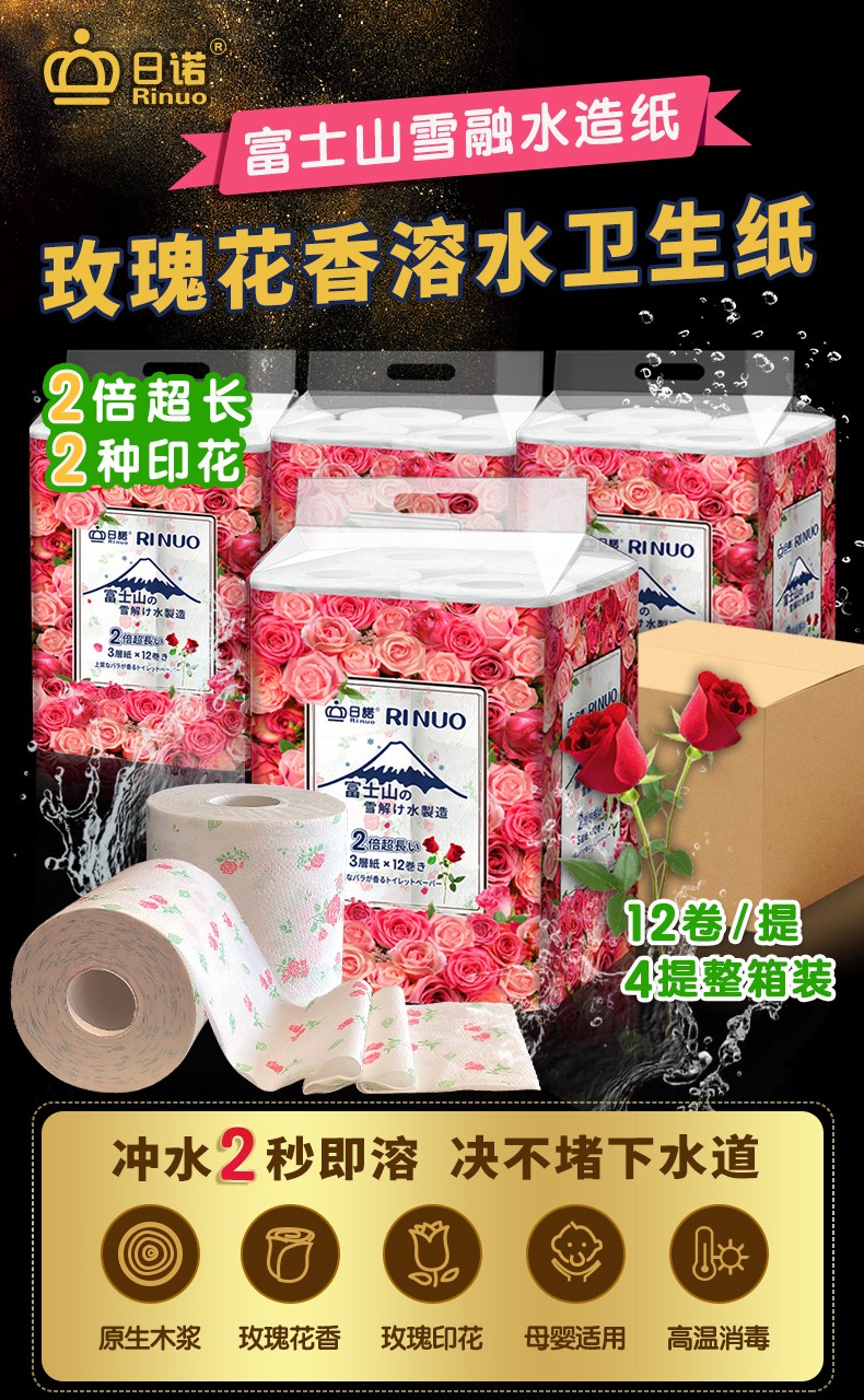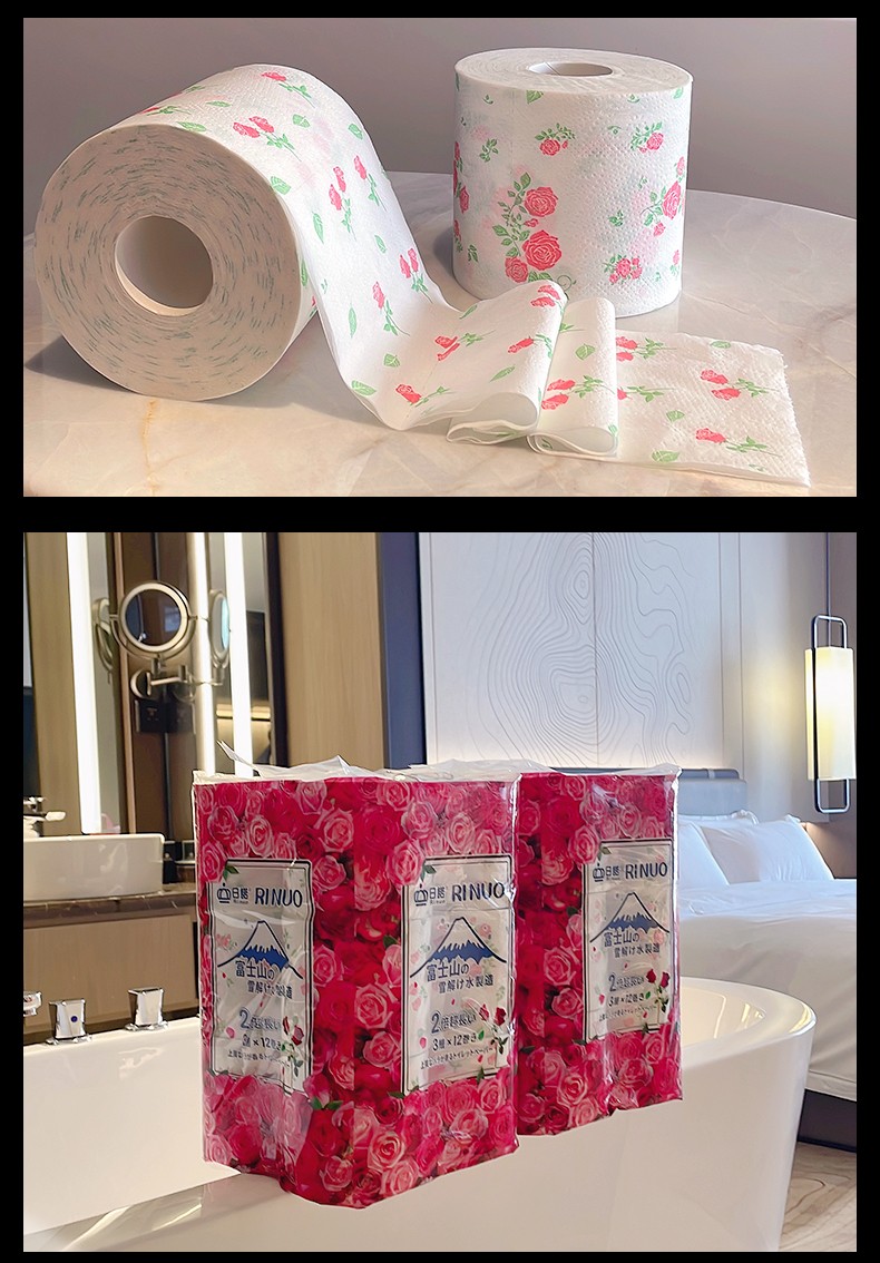 日諾日本進(jìn)口有芯卷筒紙12卷水溶卷紙玫瑰印花速溶衛(wèi)生紙4提