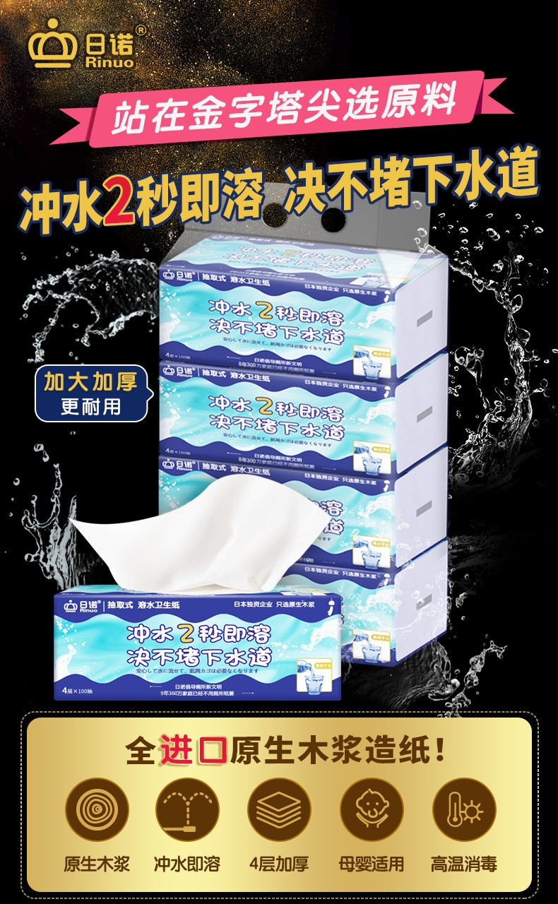 日諾水溶性溶水衛(wèi)生紙 日諾可沖水衛(wèi)生紙 批發(fā)