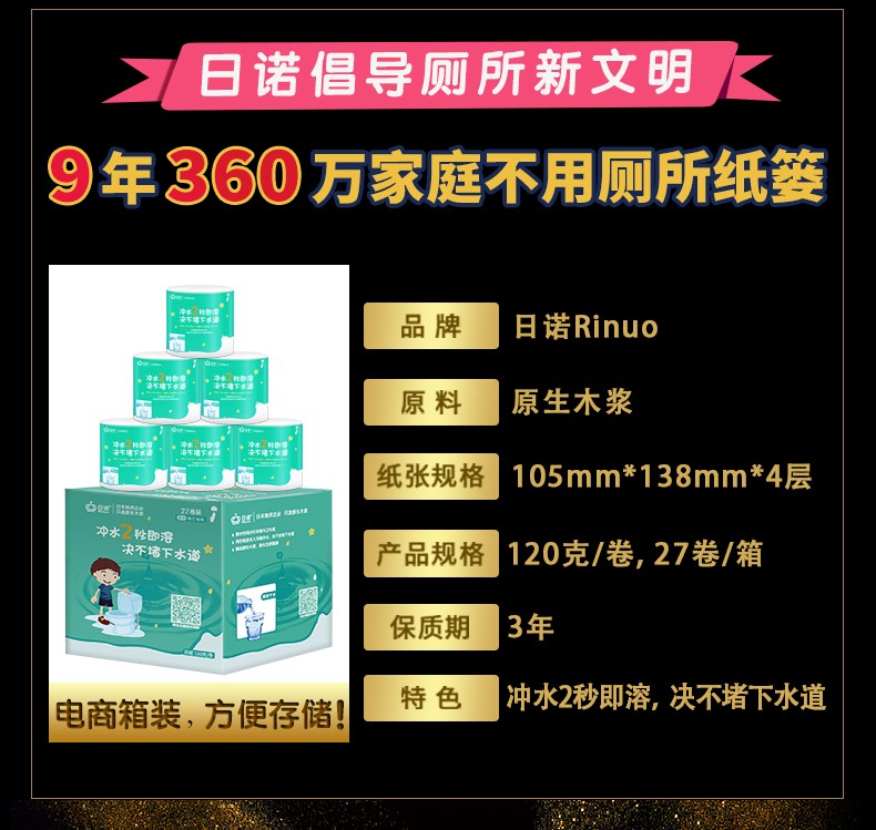 品類: 日諾水溶性溶水衛(wèi)生紙 有芯卷紙