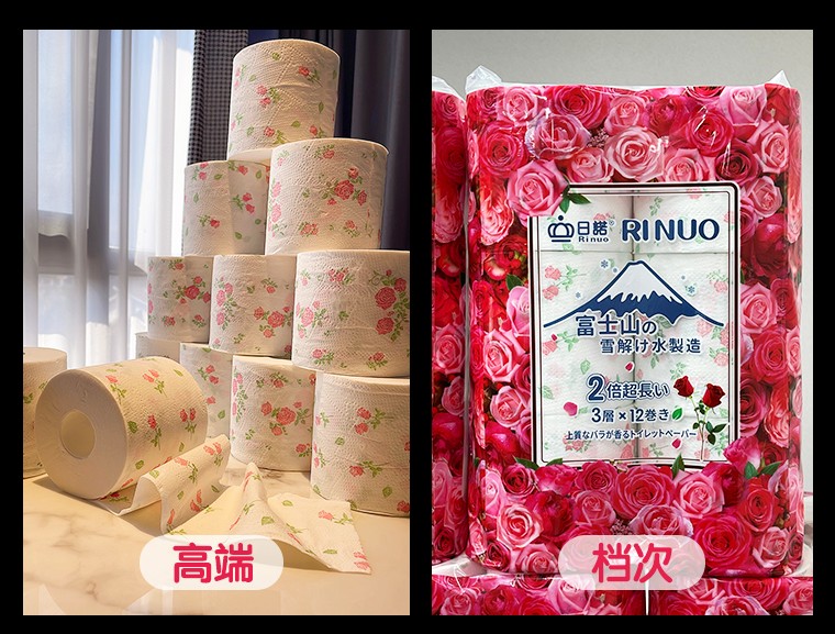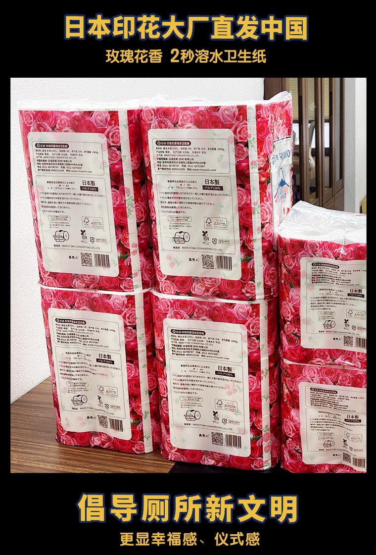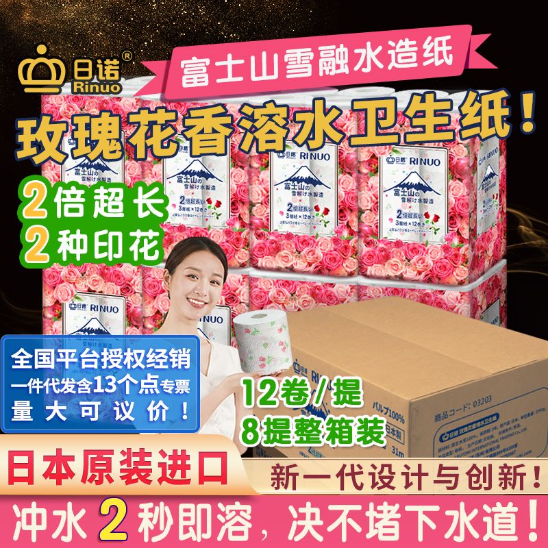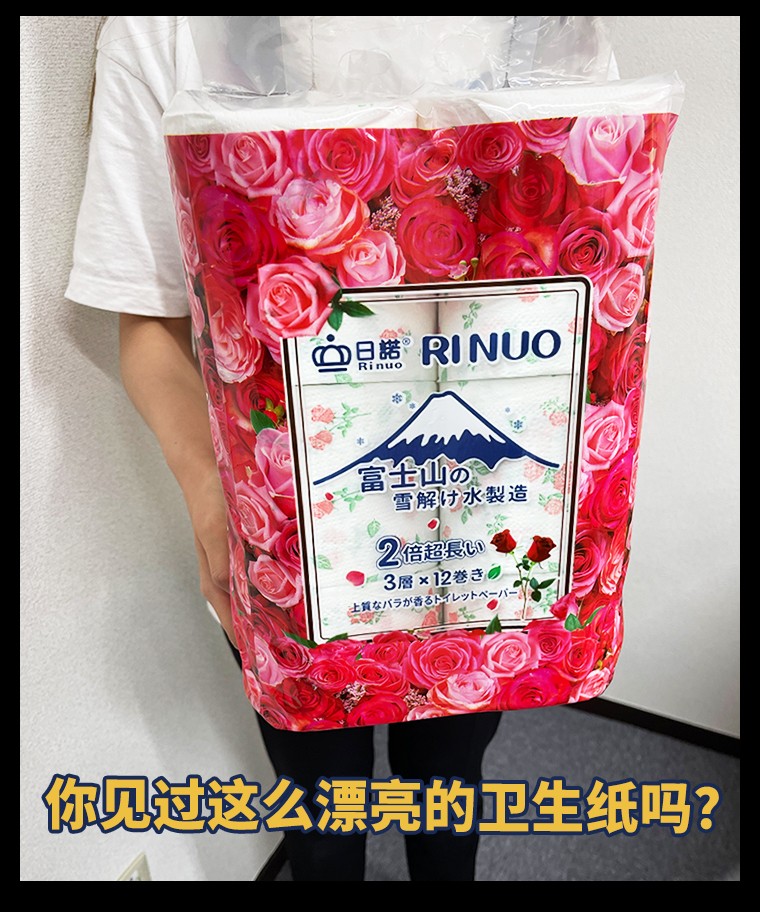 日諾日本進(jìn)口有芯卷筒紙12卷水溶卷紙玫瑰印花速溶衛(wèi)生紙1箱