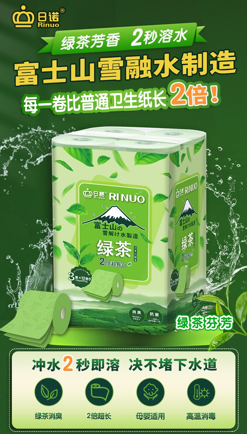 采購:日諾日本進(jìn)口有芯卷筒紙1提綠茶芳香可溶水溶衛(wèi)生紙卷紙