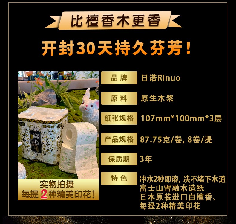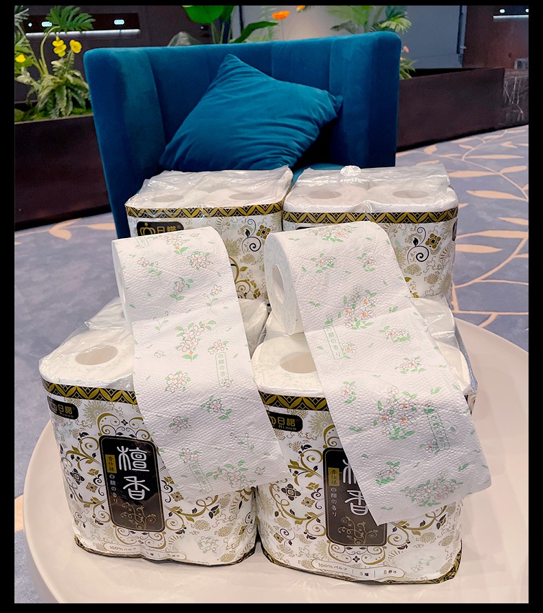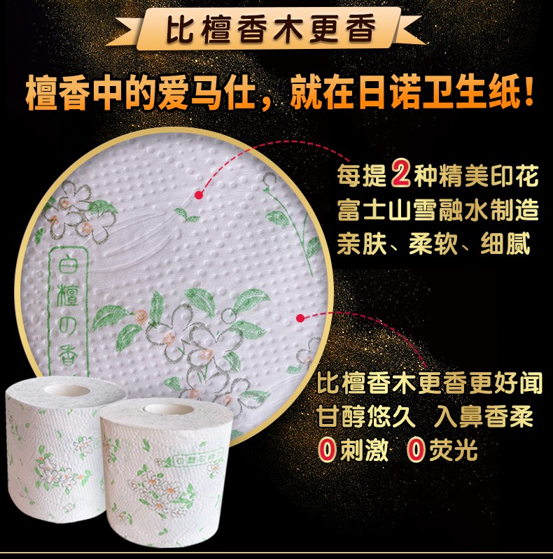 日諾日本進口檀香印花衛(wèi)生紙卷筒紙可溶水速溶廁紙有芯卷紙巾8卷