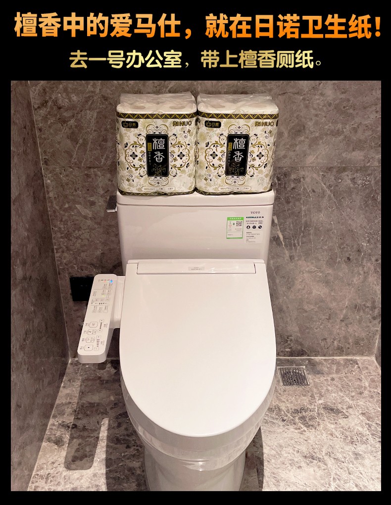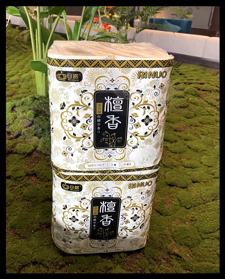 采購(gòu):日諾日本進(jìn)口檀香印花衛(wèi)生紙卷筒紙可溶水速溶廁紙有芯卷紙巾8提