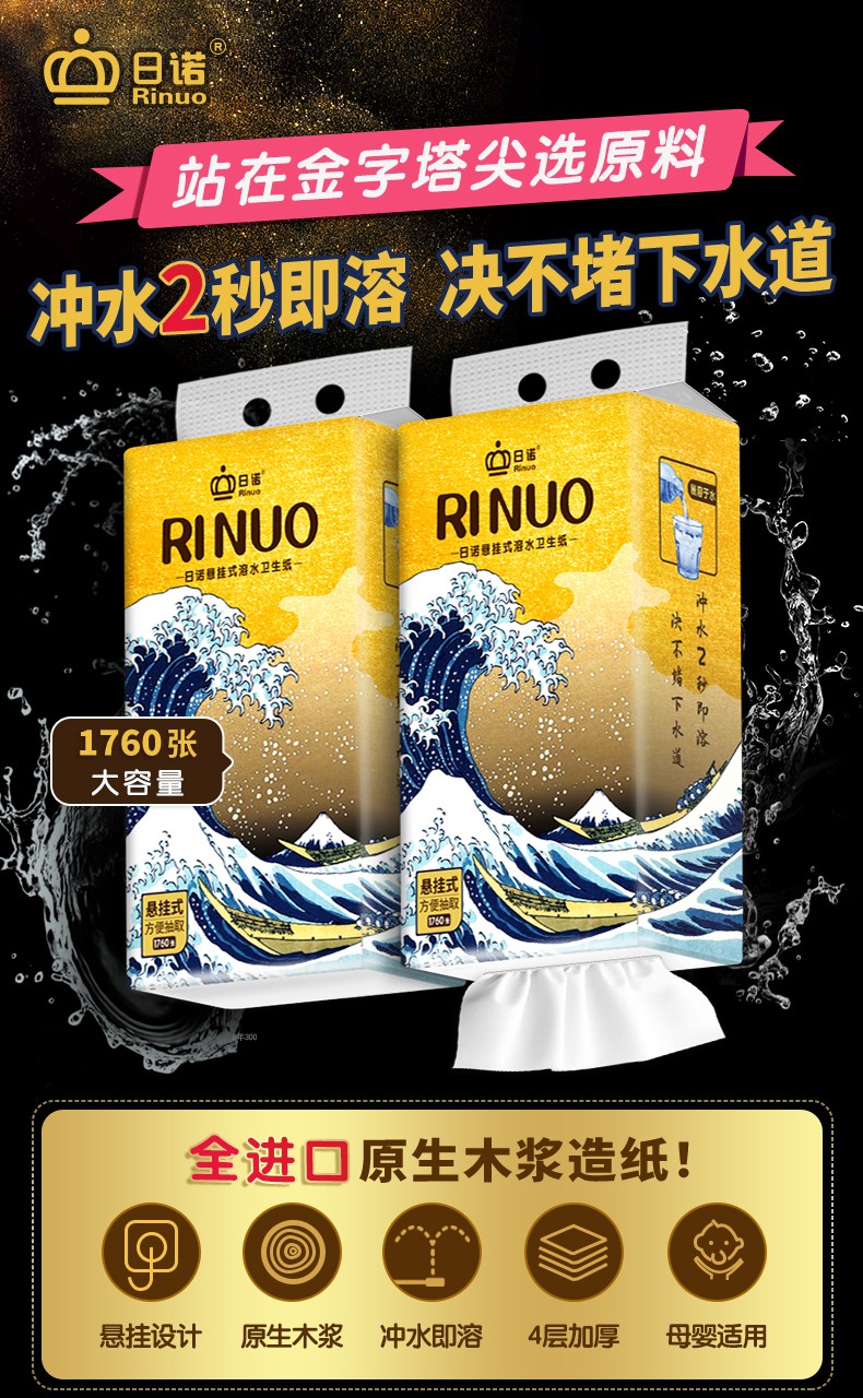 日諾懸掛式水溶抽紙巾2提抽取式可溶廁紙掛式速溶衛(wèi)生紙廠家批發(fā)